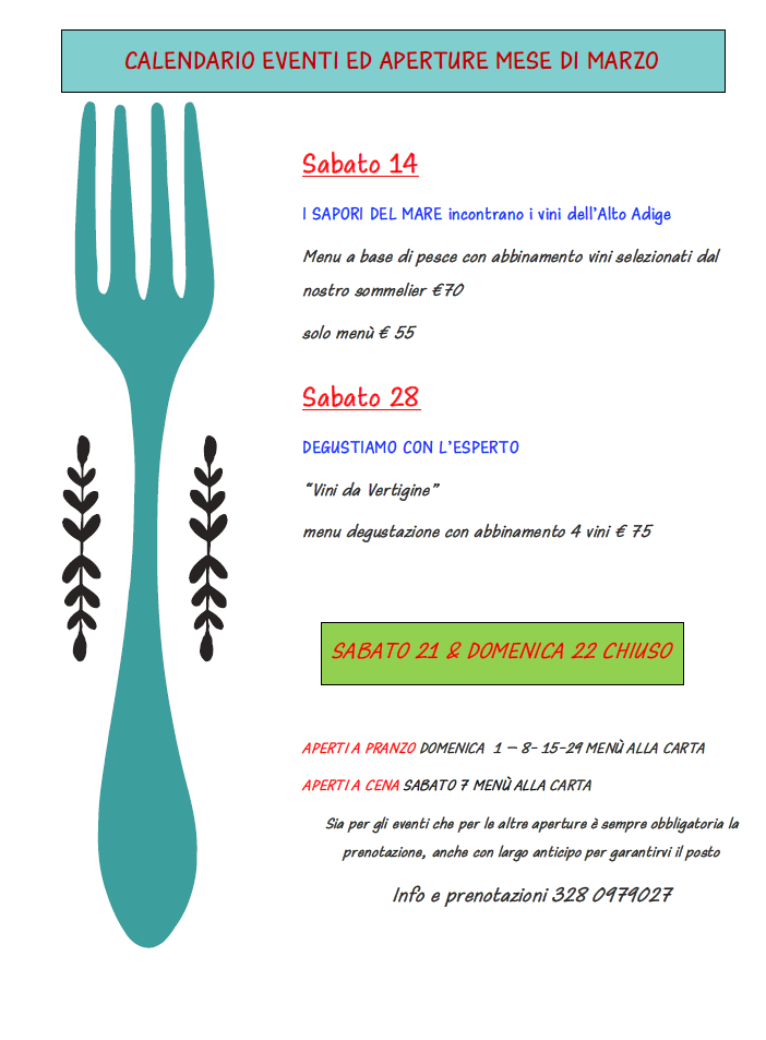 I SAPORI DEL MARE incontrano i vini dell’Alto Adige, Menu a base di pesce con abbinamento vini selezionati dal nostro sommelier € 70 solo menù € 55